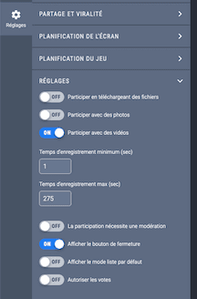 You can now add a minimum and/or maximum duration in the game settings for video contest entries. ⏰ This will allow participants to record their videos while respecting the duration you specify.